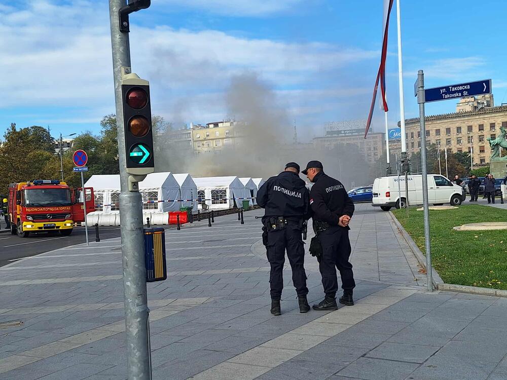 Kako Kurir saznaje, sumnja se da je uhapšeni V. A. je pucao, potom zapalio jedan šator ispred Skupštine u i bacio šaku metaka u vatru.