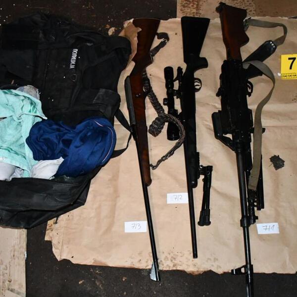 - Policija je prilikom ove opsežne akcije, pretresom stana i drugih prostorija i garažnog prostora zaplenila puškomintraljez, snajpersku pušku, pet automatskih pušaka, tri automatska pištolja – hekler, uzi i škorpion, dva poluautomatska pištolja, revolver, protivpešadijsku minu usmerenog dejstva, lovačku karabinsku pušku, pet prigušivača za automatsko oružje, nekoliko stotina komada municije različitog kalibra, dva pancirna prsluka sa oznakama "Policija", sredstva za vezivanje – lisice, više komada opasača i futrola za vatreno oružje, improvizovanu službenu legitimaciju MUP-a Srbije, ručne radio stanice za komunikaciju i više maski za sakrivanje lica - navedeno je u policijskom saopštenju, u kom je dodato i da su prilikom pretresa pronađene i dve improvizovane eksplozivne naprave sa daljinskim aktiviranjem i pratećom opremom.