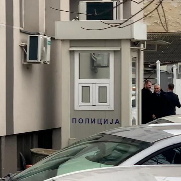 Čedomir Jovanović i njegov prijatelj Aleksandar Kos upravo su došli u policijsku stanicu na Savski venac. Njih dvojica su imali zakazano saslušanje pred državnim organima u devet sati. Političar je učestvovao u tuči u lokalu iza Palata pravde zbog čega je danas saslušan.