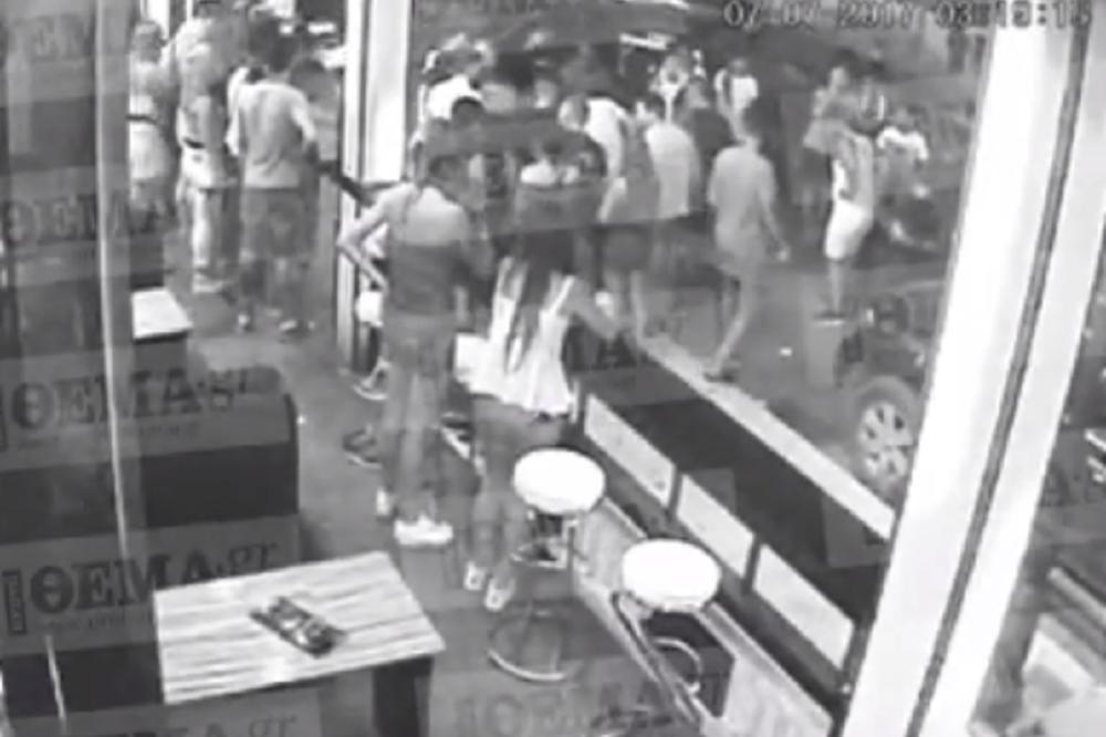 Grčki list Proto Tema je objavio snimak sigurnosne kamere jednog kafića kroz čiji se izlog vidi ceo tok tuče.
