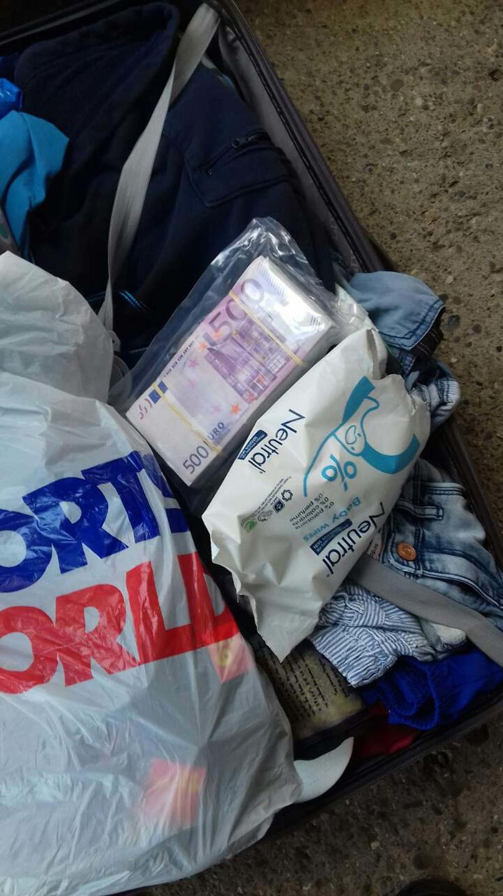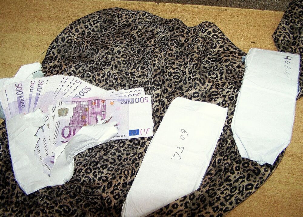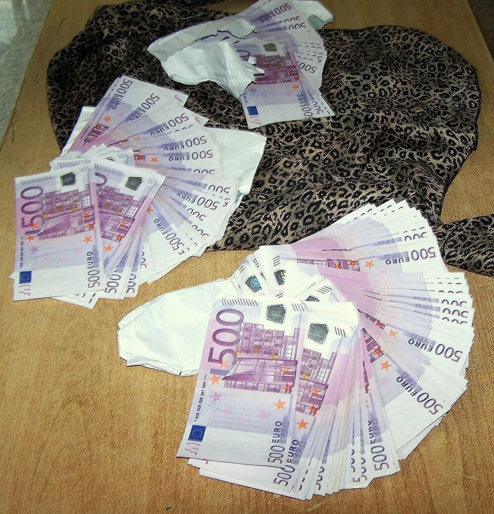 Njihove sumnje ubrzo su potvrđene, jer je nakon presecanja pakovanja utvrđeno da su polovinu unutrašosti zauzele najlonske kese u koje je bilo upakovano 100.000 evra.