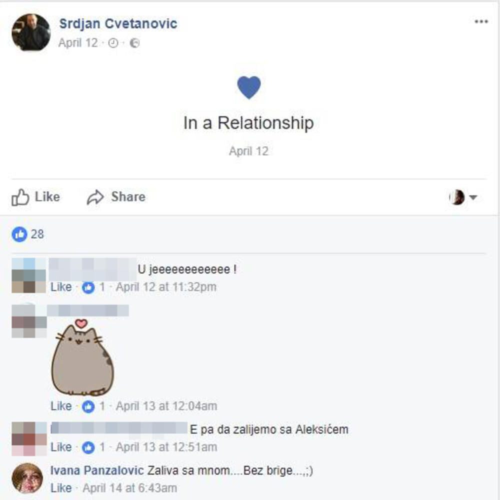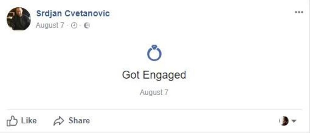 Cvetanović je na svom Fejsbuk 12. aprila ove godine obelodanio vezu sa Ivanom, dok je i ona delila uzbuđenje, pa ispod pomenutog posta ostavila komentar da u to ime "zaliva sa njom". Nedugo potom, 7. avgusta, par je objavio veridbu, a usledile su čestitke Srđanovih brojnih prijatelja, dok je, s druge strane, bilo i onih koji su bili zatečeni doktorovom odlukom da se ženi.