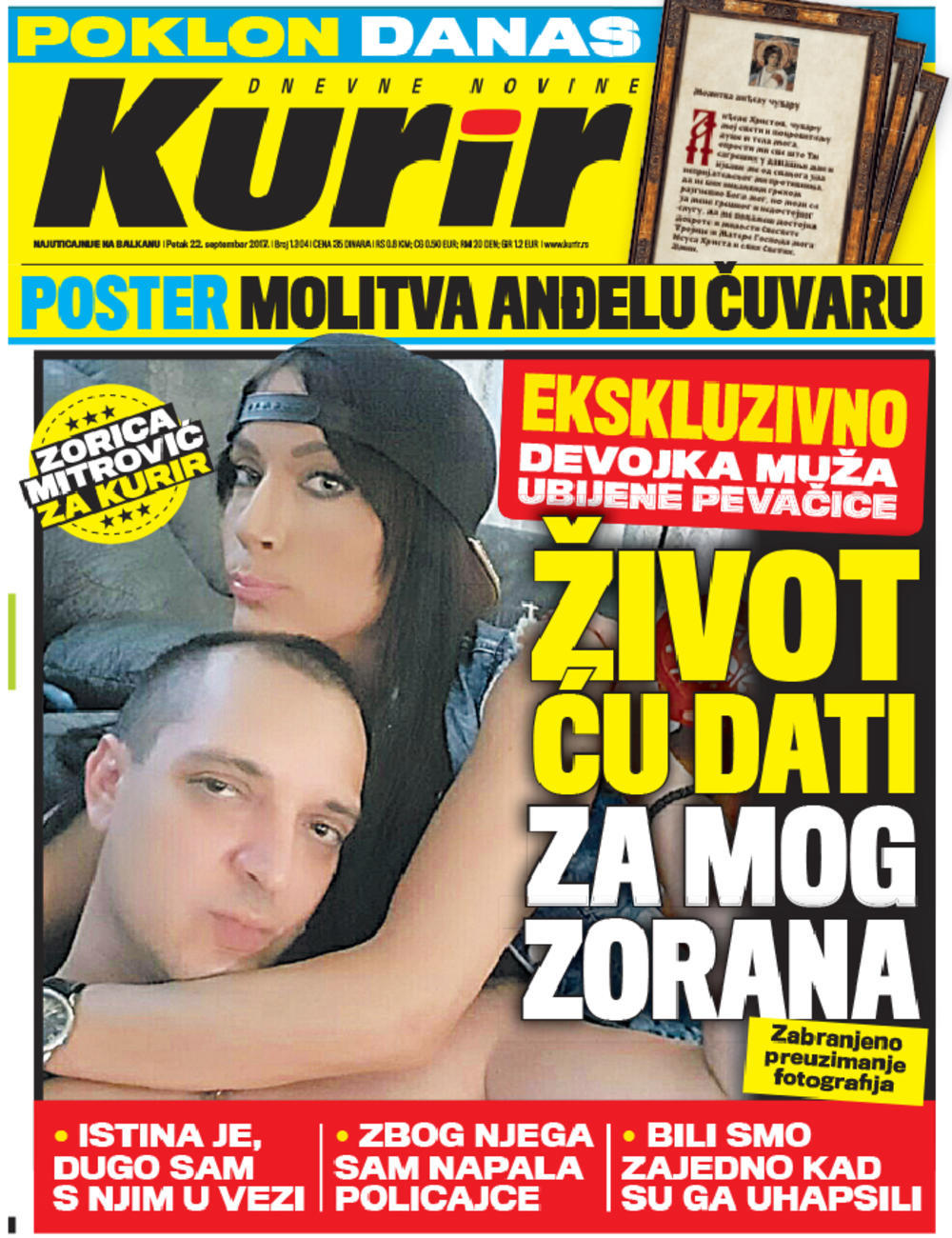 U ekskluzivnoj ispovesti ona otkriva kako i kada se upoznala sa Zoranom, odgovara na primedbe da se trudi da liči na pokojnu Jelenu, govori o noći kada je pokušala da zgazi policajce koji su hapsili Zorana, otkriva zašto smatra da će i nju pokušati da ubiju ali i na šta je spremna ako neko poželi da naudi Zoranu.