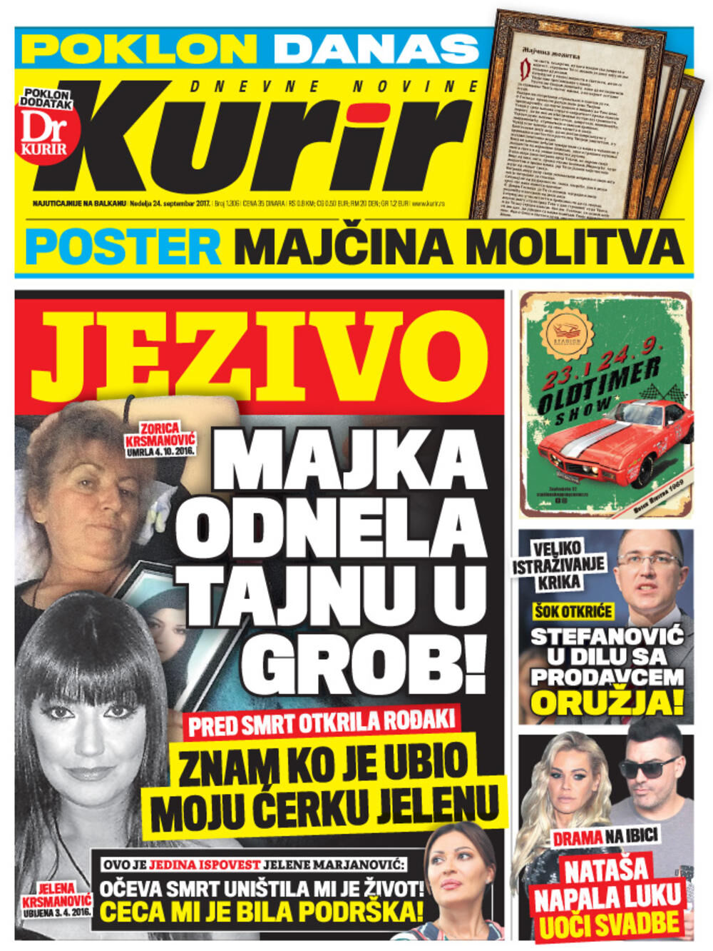 Saznajte zašto Jelenina majka nakon što je pronađeno telo više puta ponavljala da su joj Marjanovići ubili dete, zašto nikada nije imala lepo mišljenje o njima, zašto je Jelenu posećivala isključivo u studiju i šta je na samrti saopštila rođaki... ČITAJTE U ŠTAMPANOM IZDANJU KURIRA