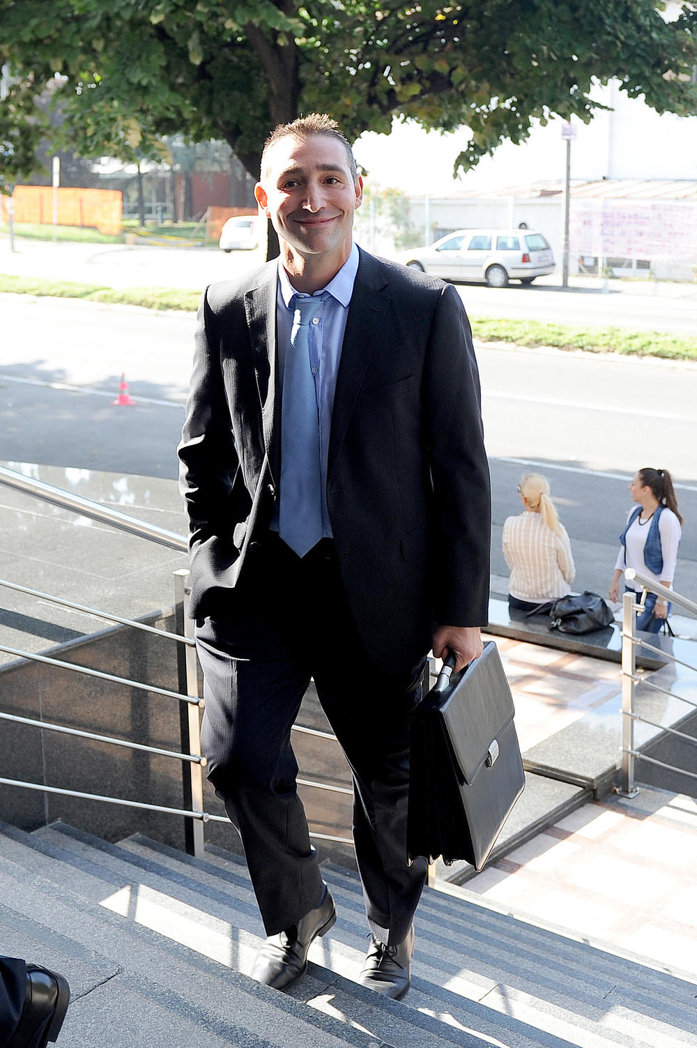 *Velja Nevolja, optužen da je prebio direktora Partizana, opušteno je išetao iz suda, sa osmehom na licu.