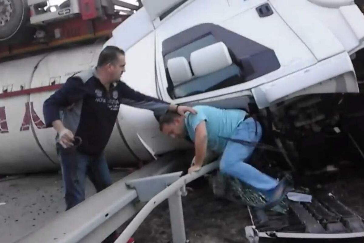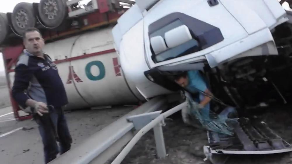Kako dodaje istog momenta istrčao je iz svog vozila kako bi pomogao nesrećnom vozaču kamiona.