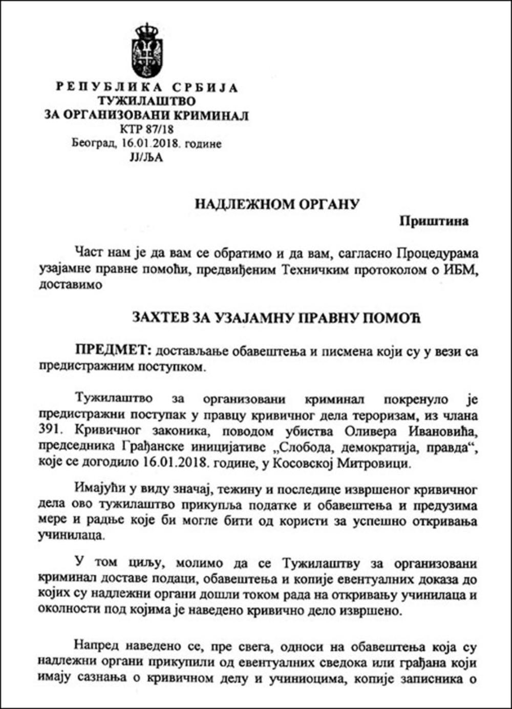 Objavljujemo sva dokumenta kojima je zvanično zatraženo uključivanje državnih organa Republike Srbije u istragu: