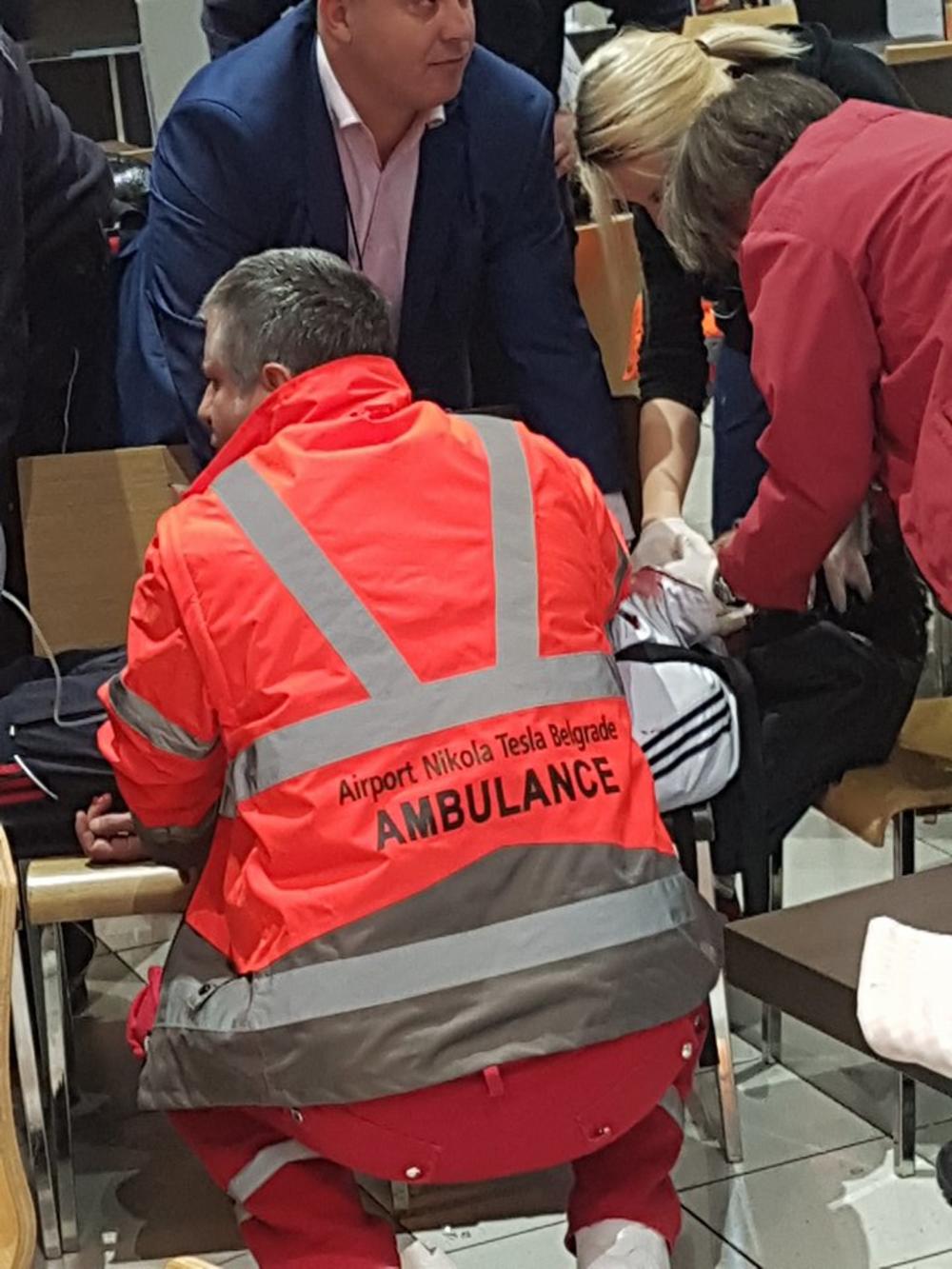 - Sve se desilo u sekundi. Čovek je sedeo sa još jednim čovekom u kafiću. Odjednom je razbio flašu i prerezao se ispod grla. Sva sreća, na aerodromu se zatekao lekar Milo Spalević, koji je čekao let za Katar, koji mu je odmah ukazao prvu pomoć, a nakon toga je došla ekipa Hitne pomoći koja mu i dalje ukazuje pomoć - kaže V. R. koja nam je javila ove informacije sa aerodroma.