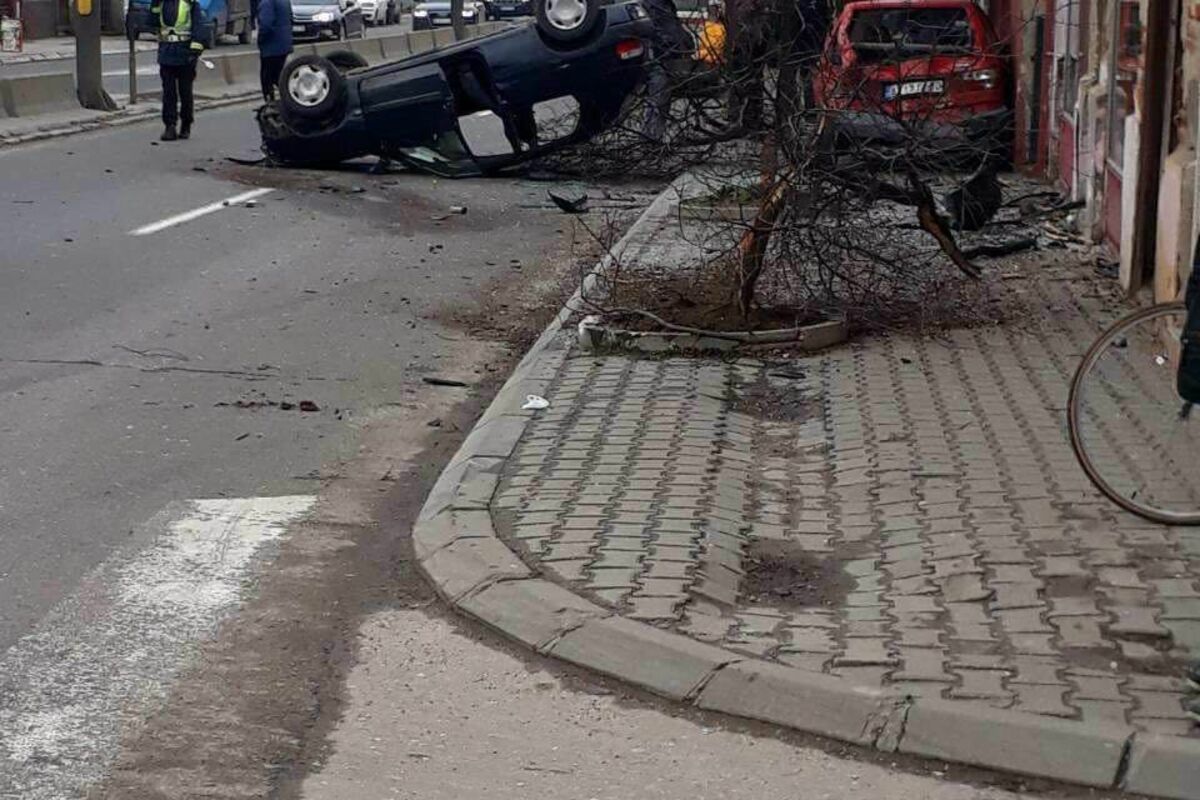 PROBIO BANKINU PA ZAVRŠIO NA KROVU: Težak udes u centru Kragujevca (FOTO)
