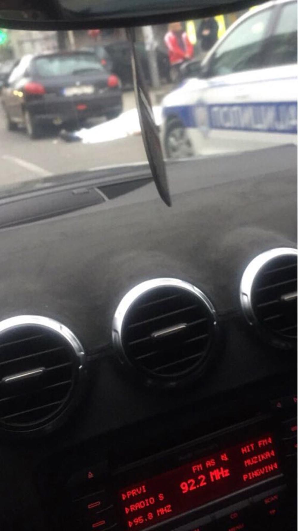 Telo osobe prekrivene čaršafom uslikano je iz automobila koj se našao na licu mesta.