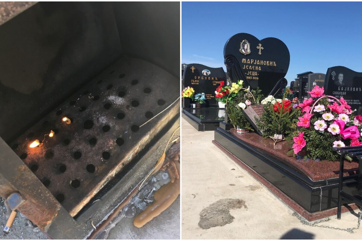 Kako su nam grobari u Borči ispričali, pre 10h tamo je bila jedna žena, a trenutno možemo videti i tri sveće koje gore.