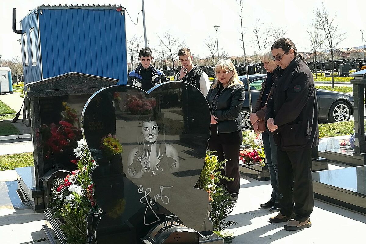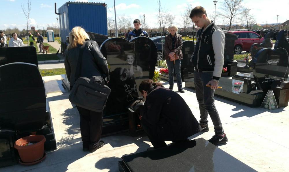 Svekar Jelene Marjanović Vladimir Marjanović, kuma Vera Vukomanović i Uroš Marjanović, Zoranov sin iz prvog braka došli su danas na grob ubijene pevačice na drugu godišnjicu od njene smrti.