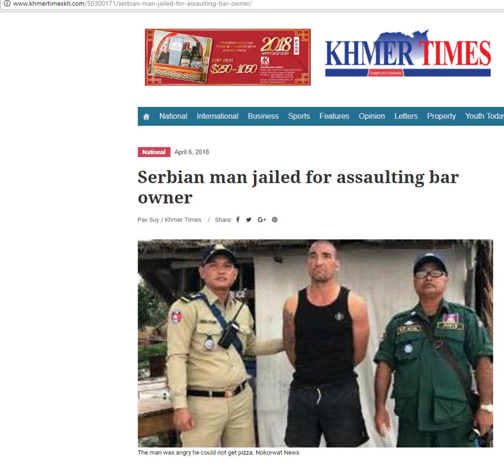 Kako navodi list "Kmer tajms", Miloš je napao vlasnika jednog bara i jednog zaposlenog jer su "odbili da mu prodaju picu".