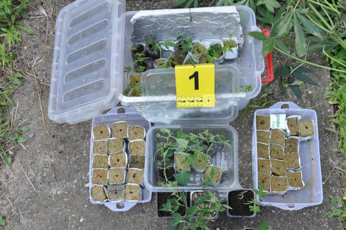 Tom prilikom, zaplenjeno je 68 biljaka kanabisa zasađenih u plastičnim saksijama, visine preko jedan metar, ukupne težine 14,2 kilograma. Pronađeni su i preparati za uzgoj i prehranu biljaka.