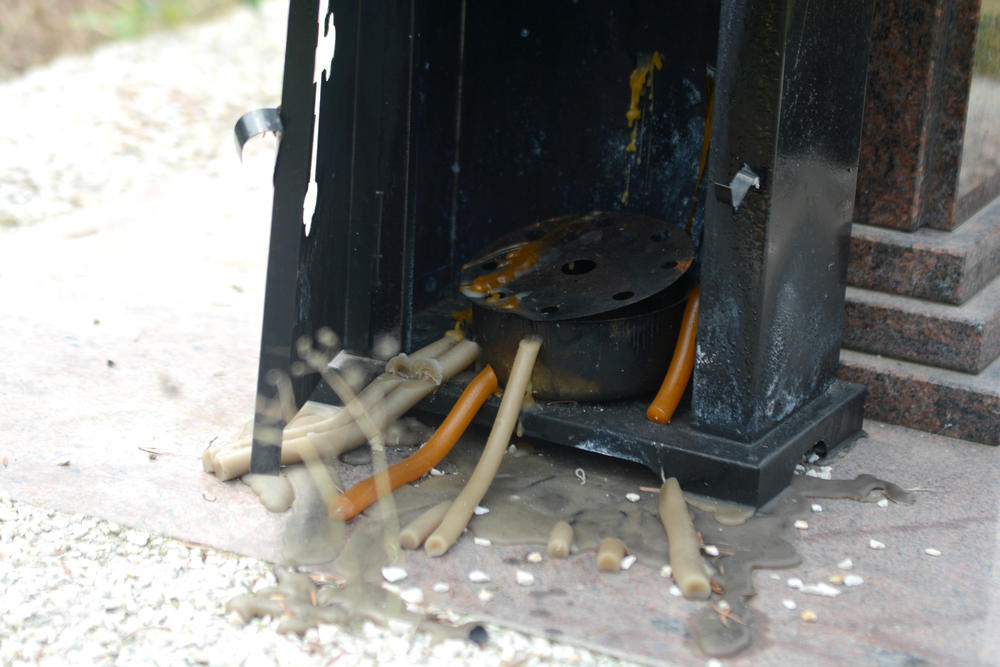 Čini se da odavno niko nije posetio ovo mesto, smeće se nalazi svuda oko spomenika, sveće su potpuno oborene i pale, izgleda da neko ko ih je zapalio poslednji put nije ni sačekao da izgore, cveće je uvenulo, a jedna vaza veštačkog nije promenjena ko zna koliko meseci.