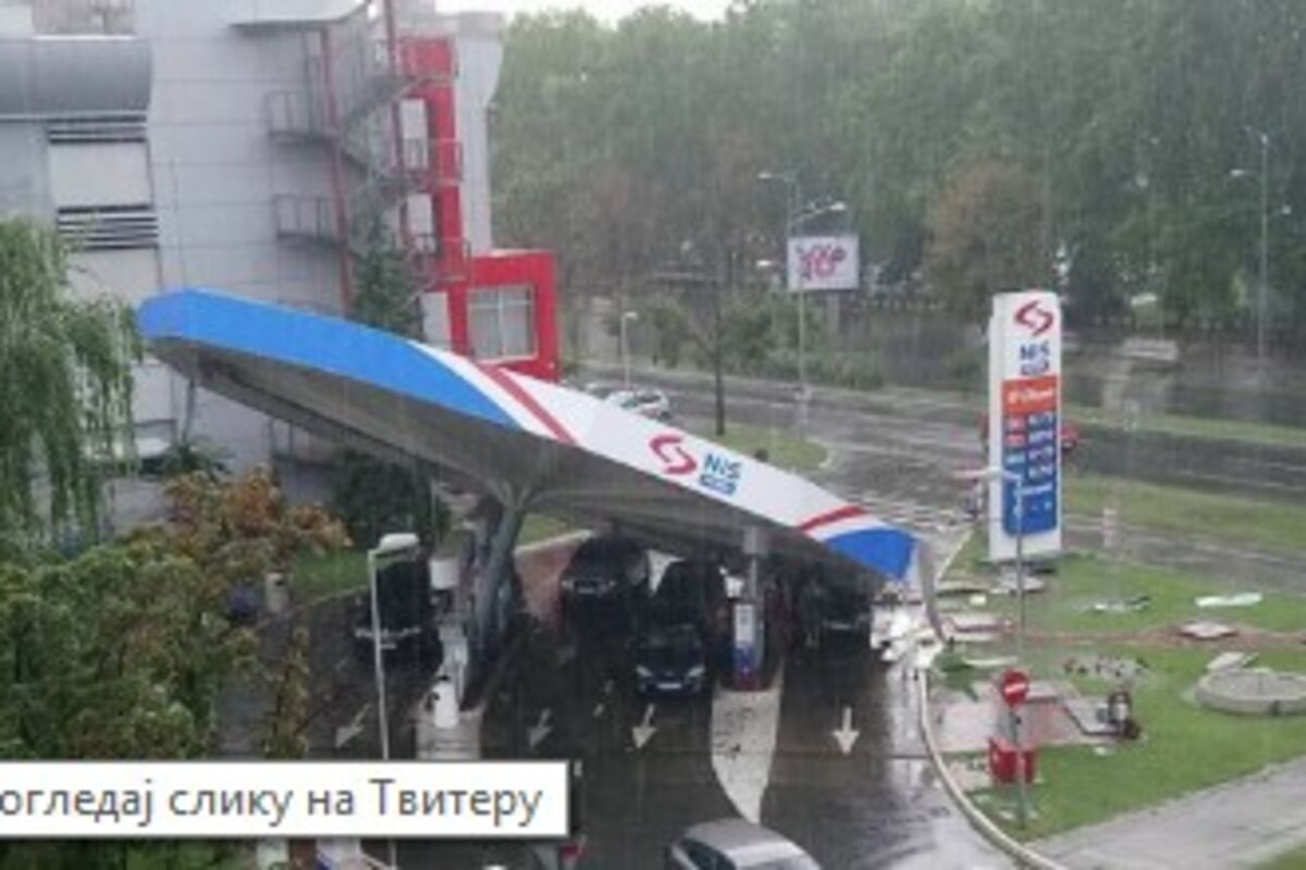 HAOS U NOVOM SADU: Nevreme srušilo KROV pumpe, hitne službe na terenu! (FOTO)
