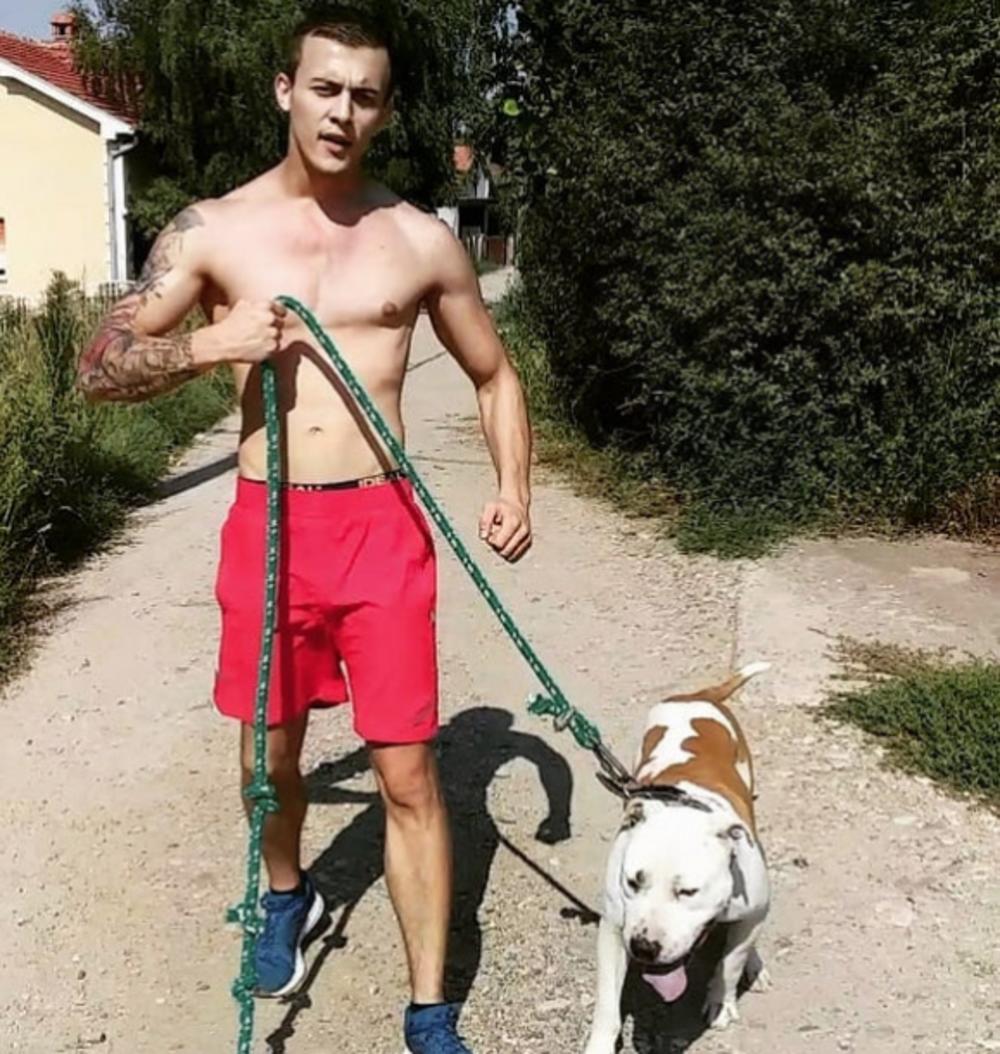 Na jednom od snimaka na kojima je ovaj mladić označen na društvenim mrežama vidi se kako huška staforda da se bije sa drugim psom. Sudeći po fotografijama koje deli društvenim mrežama staford je u njegovom vlasništvu i na psu su vidljive brojne povrede od borbi.