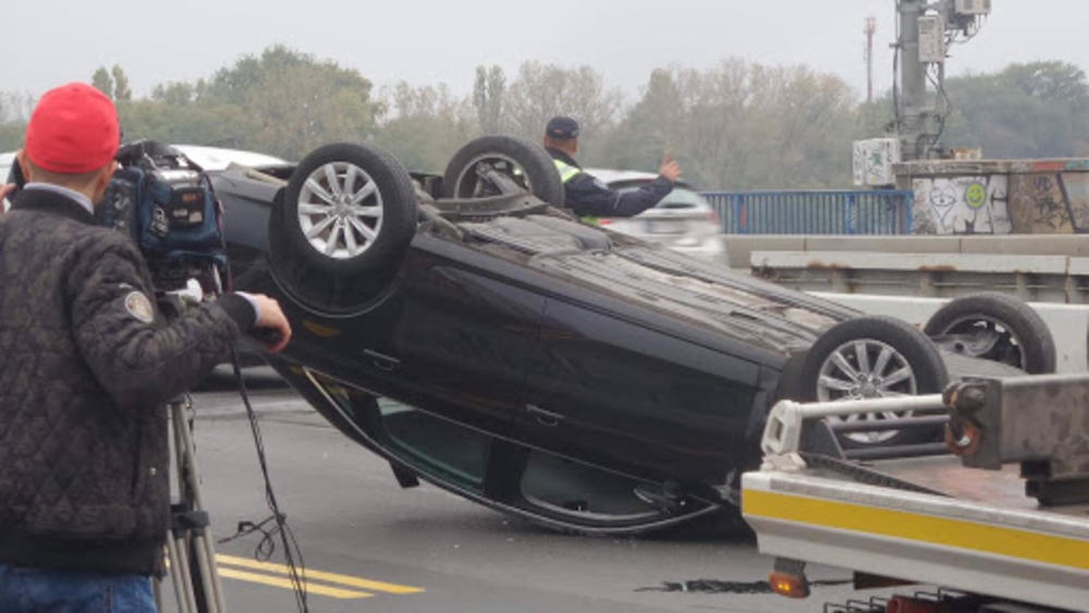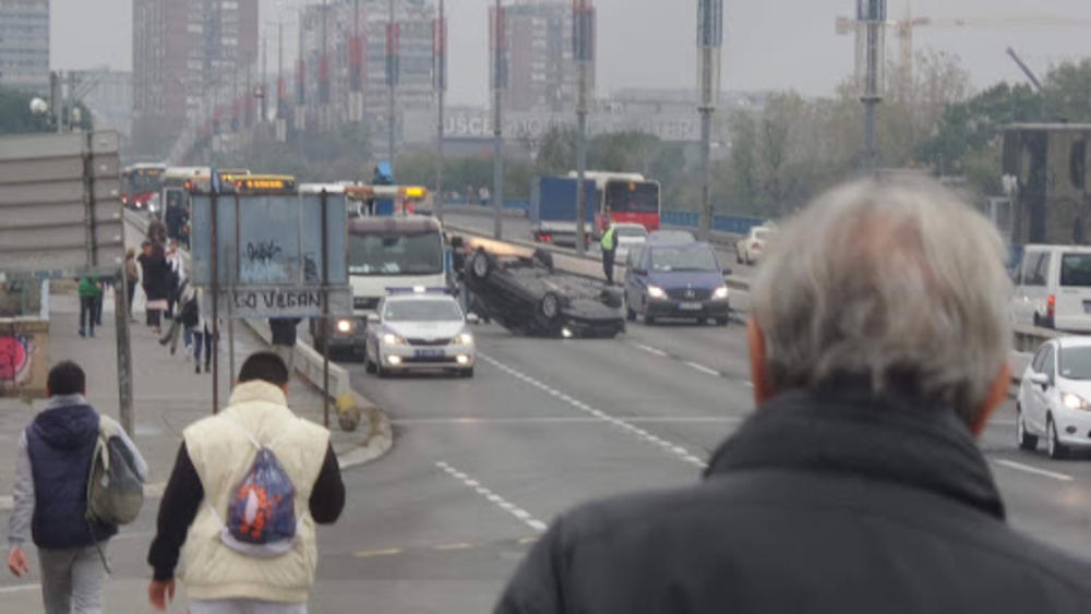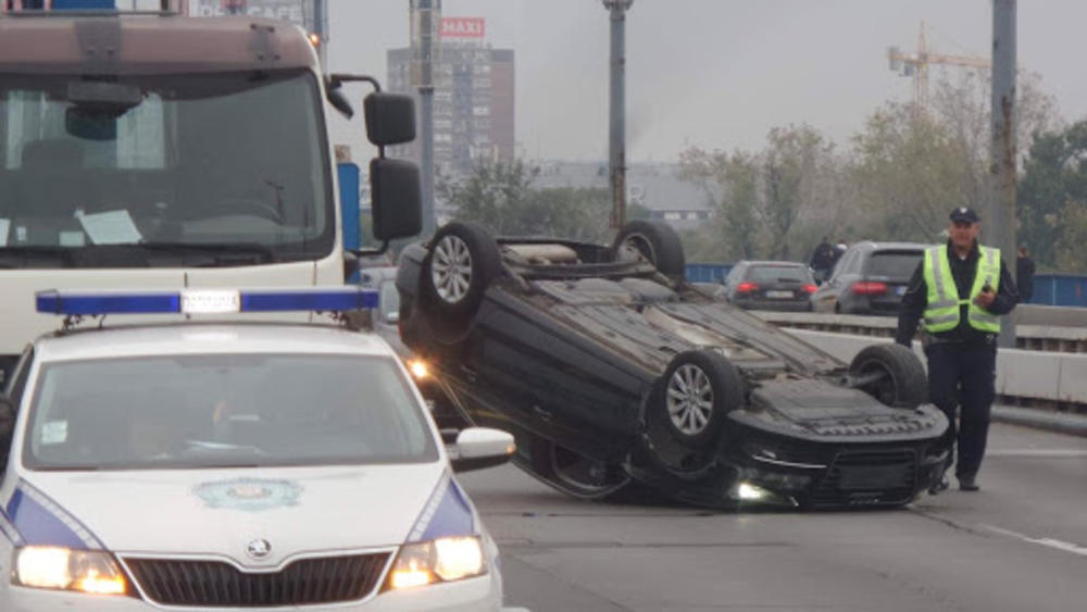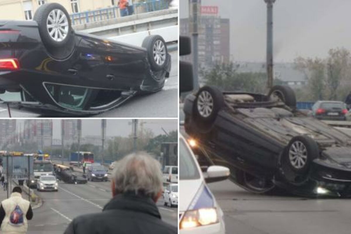 U saobraćajnoj nesreći koja se dogodila na Brankovom mostu došlo je do prevrtanja jednog putničkog automobila, saznaje "Blic".