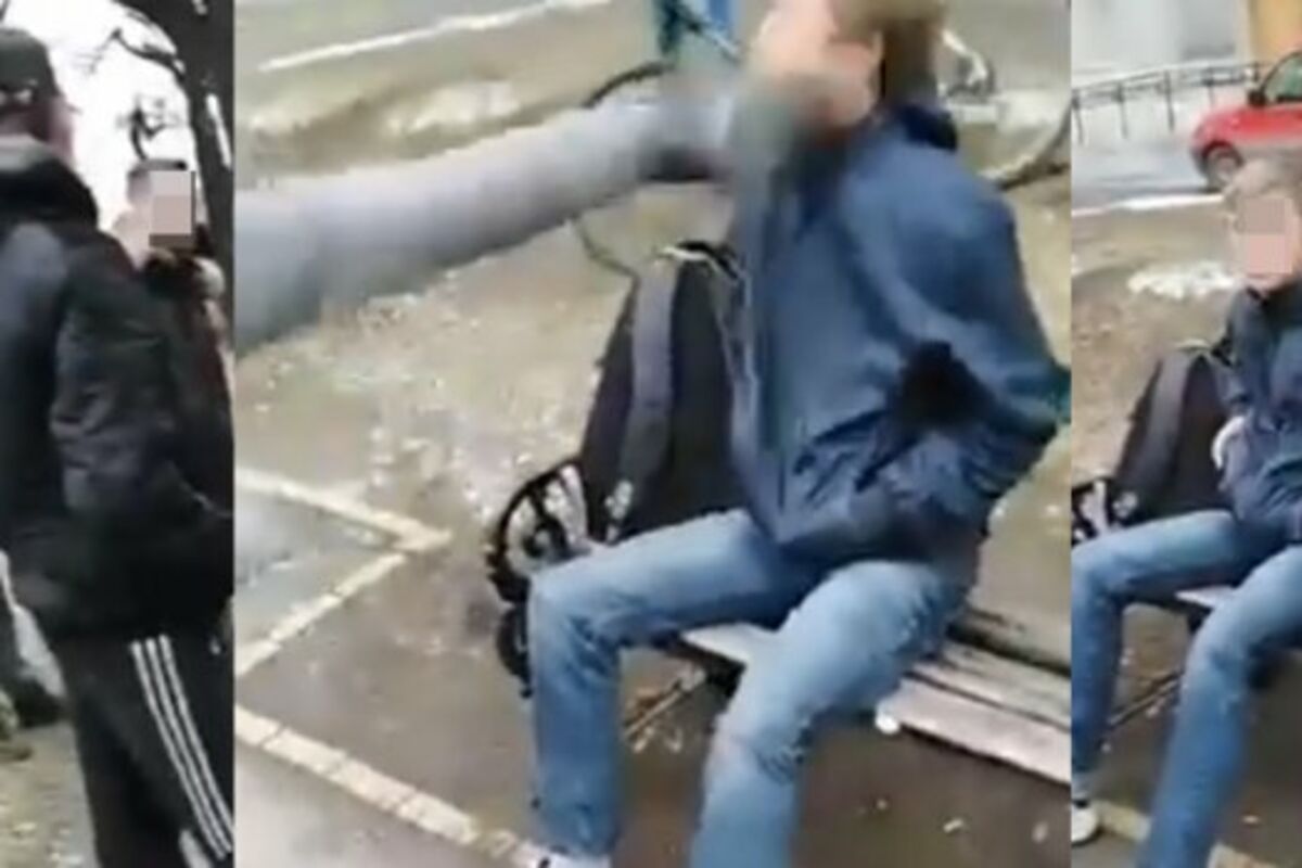 Na snimku se jasno da vidi da žrtva mirno sedi na klupi i da ga je nekoliko tinejdžera opkolilo.Jedan, kome se jasno vidi lik, šutira snažno dečaka u lice.