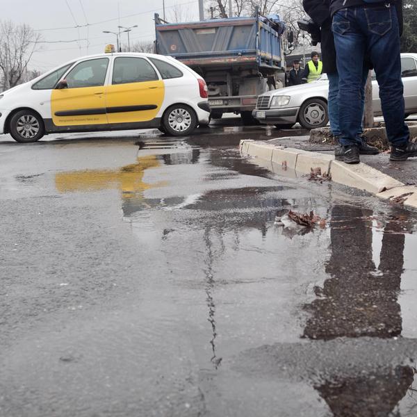 Naime, na fotografiji s mesta nesreće vidi se kako izvire voda koja je ledila na asfaltu, a koja je izvirila iz male rupe koja je nastala usled pucanja cevi.