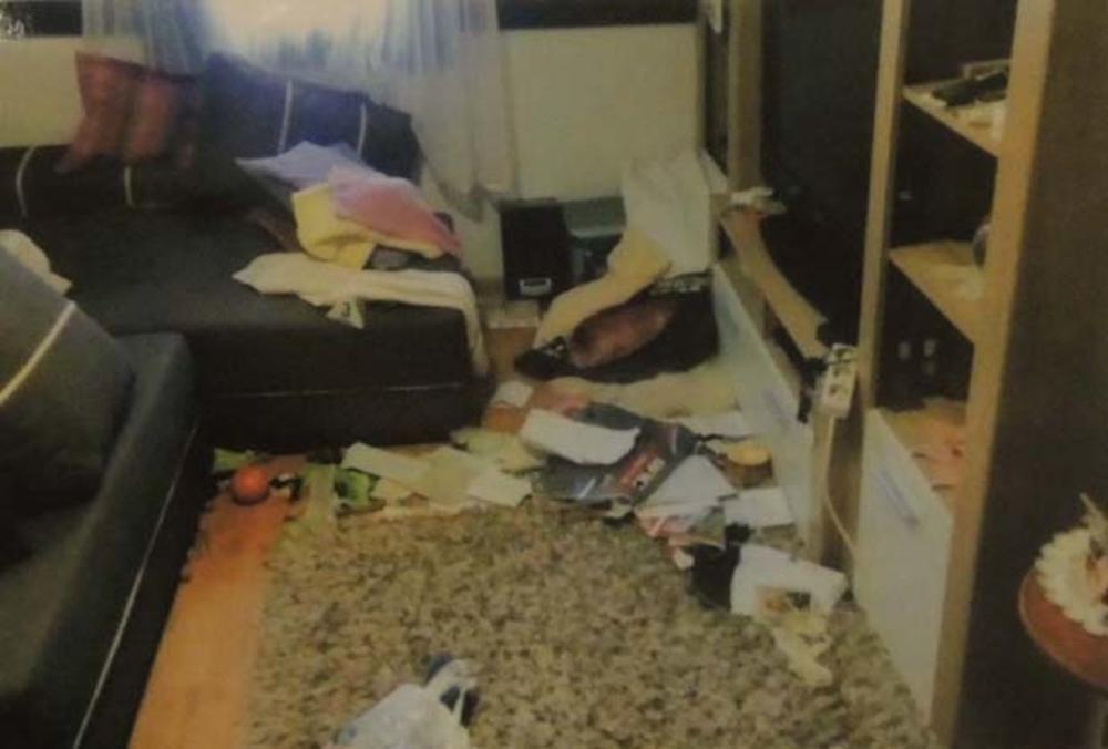 Kad su završili pljačku, jedan od razbojnika nogom je gurnuo stolicu na kojoj je bila starica, i oborio je na pod, a onda su preko nesrećne žene nabacali delove ugaone garniture, jastuke, jakne…
