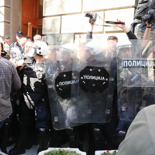 Dva piripadnika MUP povređena su u centru Beograda, kada ih napala grupa huligana koja je pokušala da probije kordon.