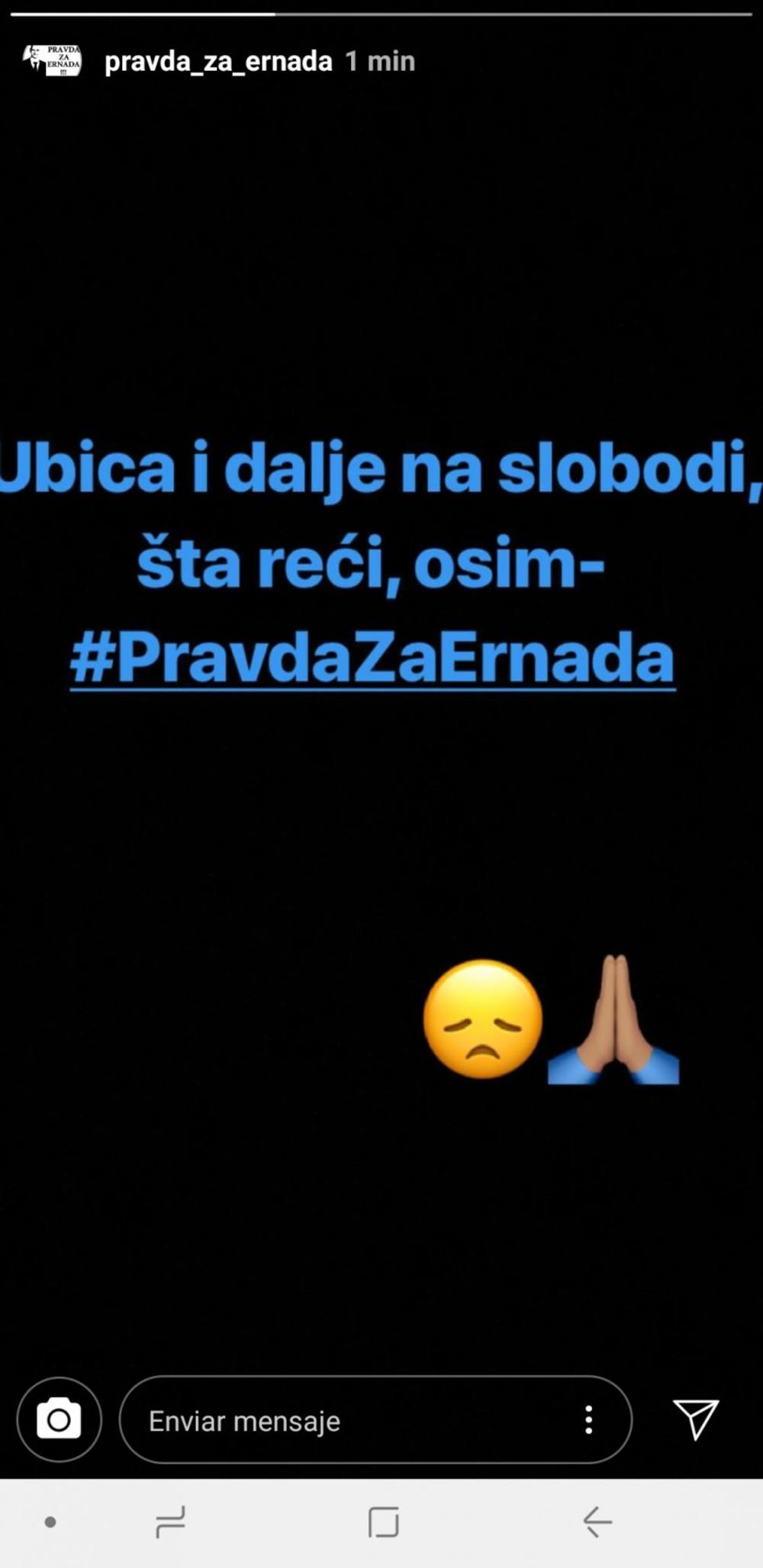 Ni porodici nije saopšteno ko je ubio njihovog sina i brata. Očajni Pazarci, porodica, prijatelji, rođaci, počeli su da vape za pravdom. "Pravda za Ernada" poruka je koja se sada širi društvenim mrežama, a na Instagramu je ovaj profil zapratilo skoro 2.000 ljudi, prenose mediji.