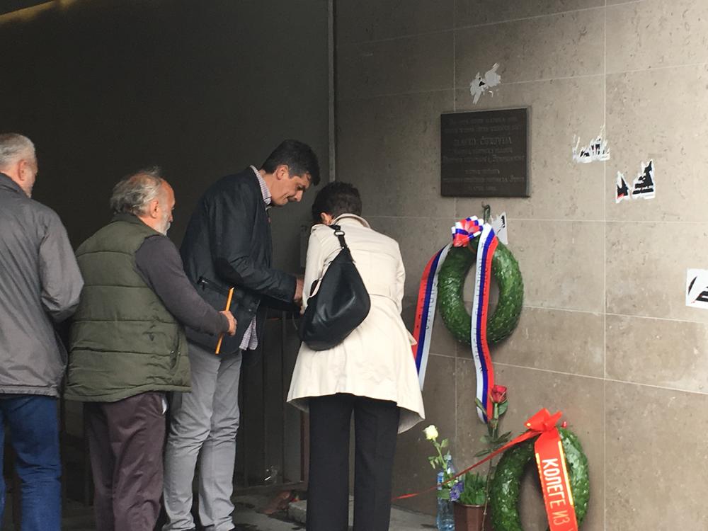 Vence kod spomen-obeležja u Svetogorskoj 35 položili su predstavnici Nezavisnog udruženja novinara Srbije i Udruženja novinara Srbije, rodbina Slavka Ćuruvije, prijatelji i kolege.