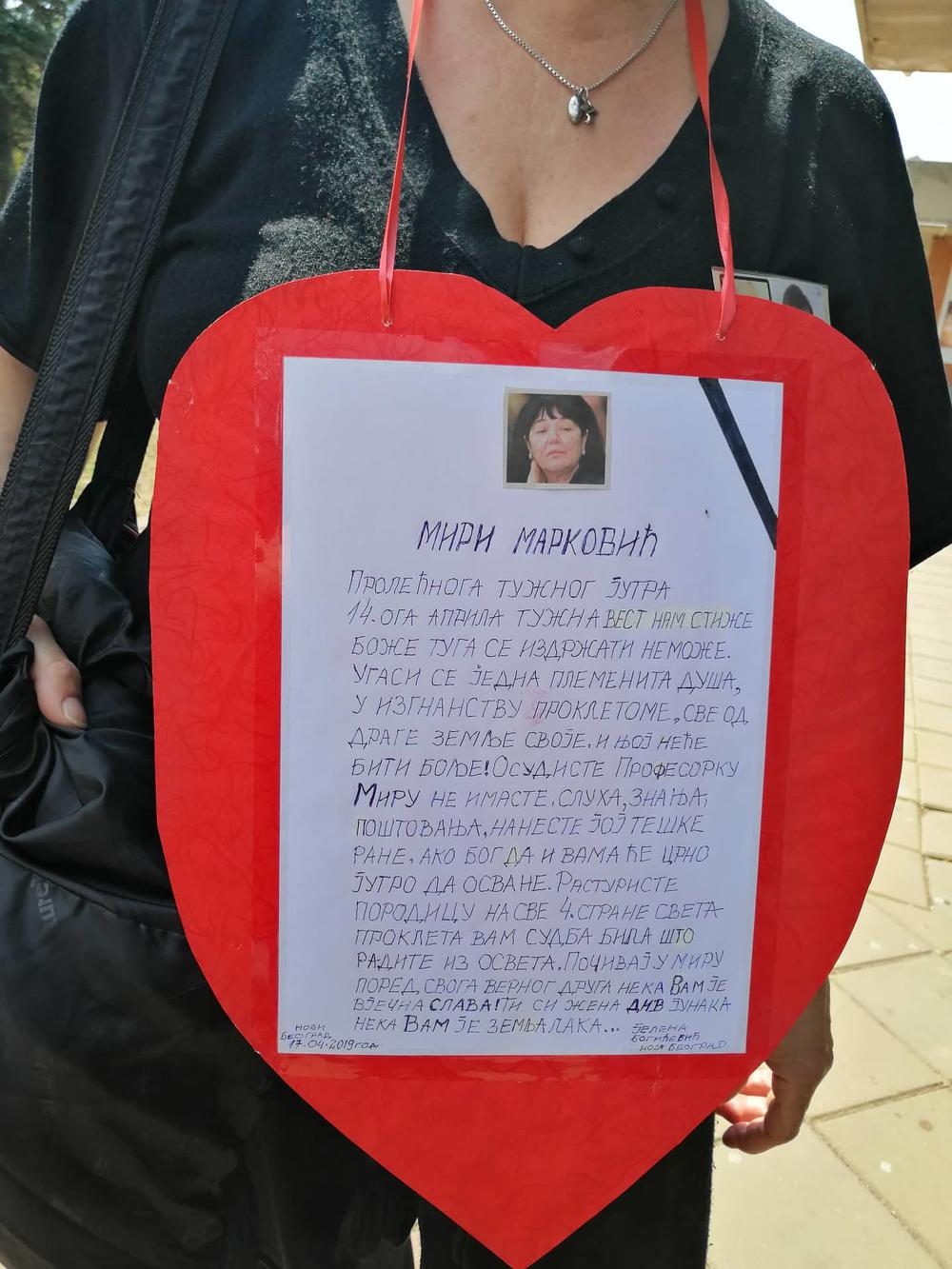 "Osudiste profesorku Miru, ne imaste sluga, znanja, poštovanja, naneste joj teške rane" , deo je poruke oko njenog vrata