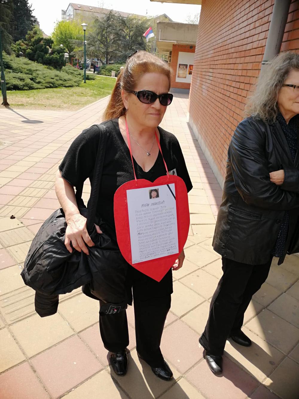 Na svečanoj komemoraciji u Požarevcu se pored članova stranke pojavila i žena koja je oko vratila nosila srce sa fotografijom Mire Marković i sa ispisanom porukom žaljenja.