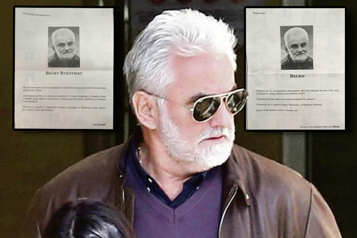 Od oca Veselina Veska Vukotića (57) koji je likvidiran u nedelju ispred svoje kuće u Kotoru čituljom su se oprostili sinovi Jovan i Igor.