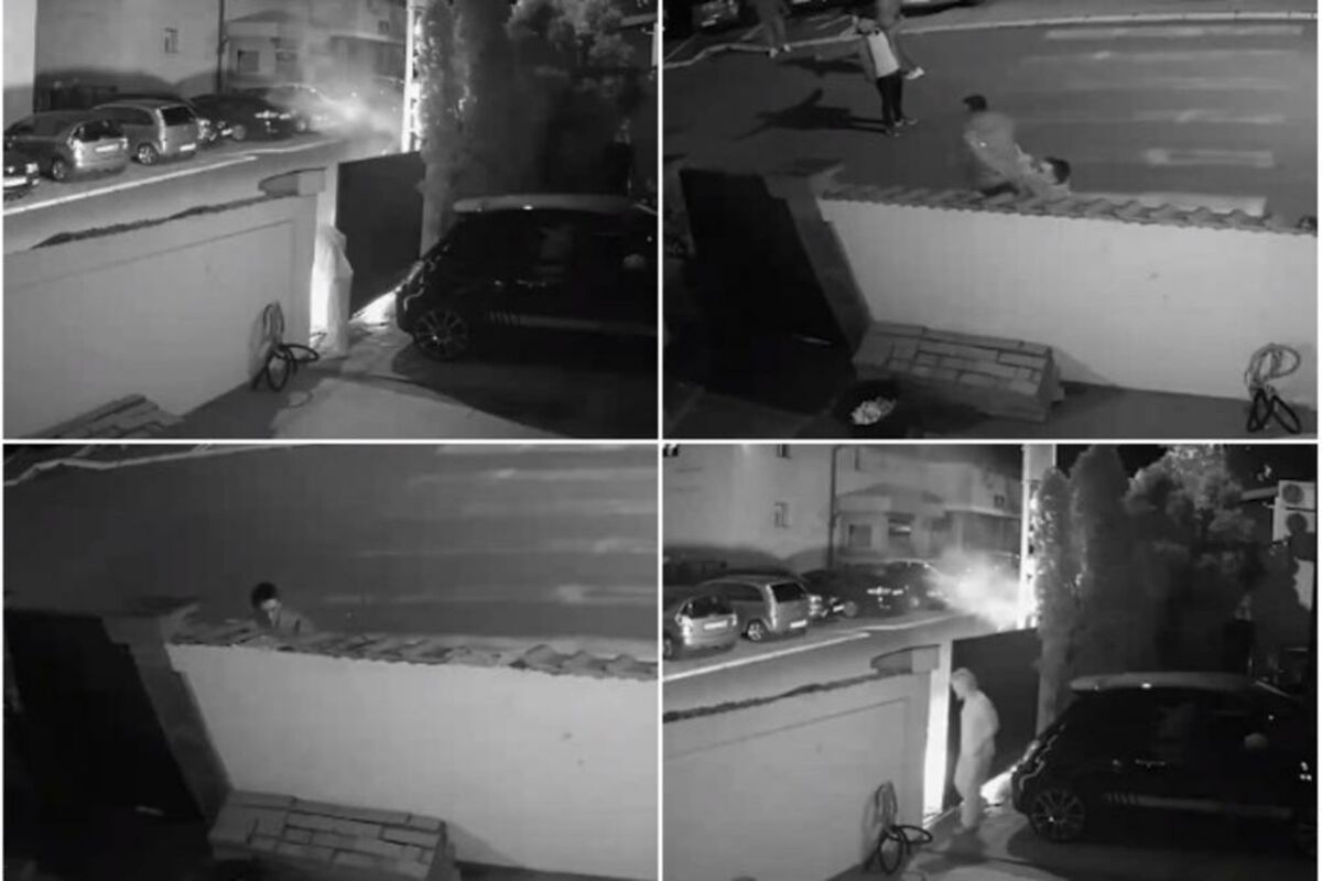 Huligani su zapalili plastičnu gajbicu i bacili je u dvorište, na garažu čija su vrata potom nagorela posle čega su pobegli, baš kao što se može videti na snimku.