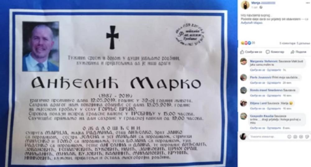 Anđelić je stradao u trebinjskom naselju Mokri Dolovi, kada je automobilom „alfa romeo“ iz za sada nepoznatih razloga izleteo s puta i udario u podzidu. Kako saznajemo, Marko je iz Beograda, gdje je živio i radio, a prije nekoliko dana došao je u svoj rodni kraj da se oženi, piše Srpskainfo.