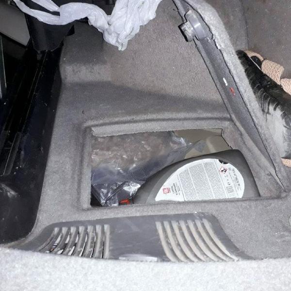 Međutim, detaljnim pregledom najpre je u naslonu suvozačkog i vozačkog sedišta, a zatim i iza naslona zadnjeg sedišta, u rezervnom točku i bočnoj šuljini iznad zadnjeg levog točka pronađeno ukupno 30 paketa suve biljne materije zelene boje i karakterističnog mirisa, za koju se sumnja da je u pitanju opojna droga marihuana.