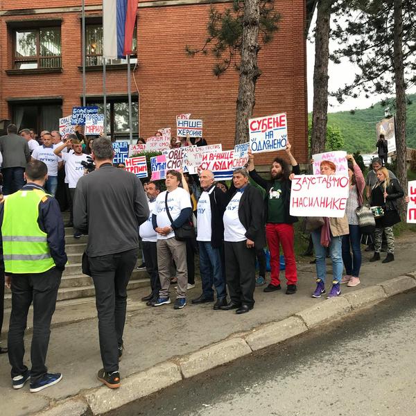 10: 45 - Okupljanje ispred suda u Brusu je počelo. Atmosfera podseća na demonstracije, ispred suda su doboši i transparenti.