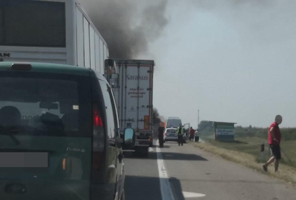 Kako javljaju čitaoci Kurira, u ovom delu puta stvorile su se ogromne gužve, a gust dim i dalje kulja.