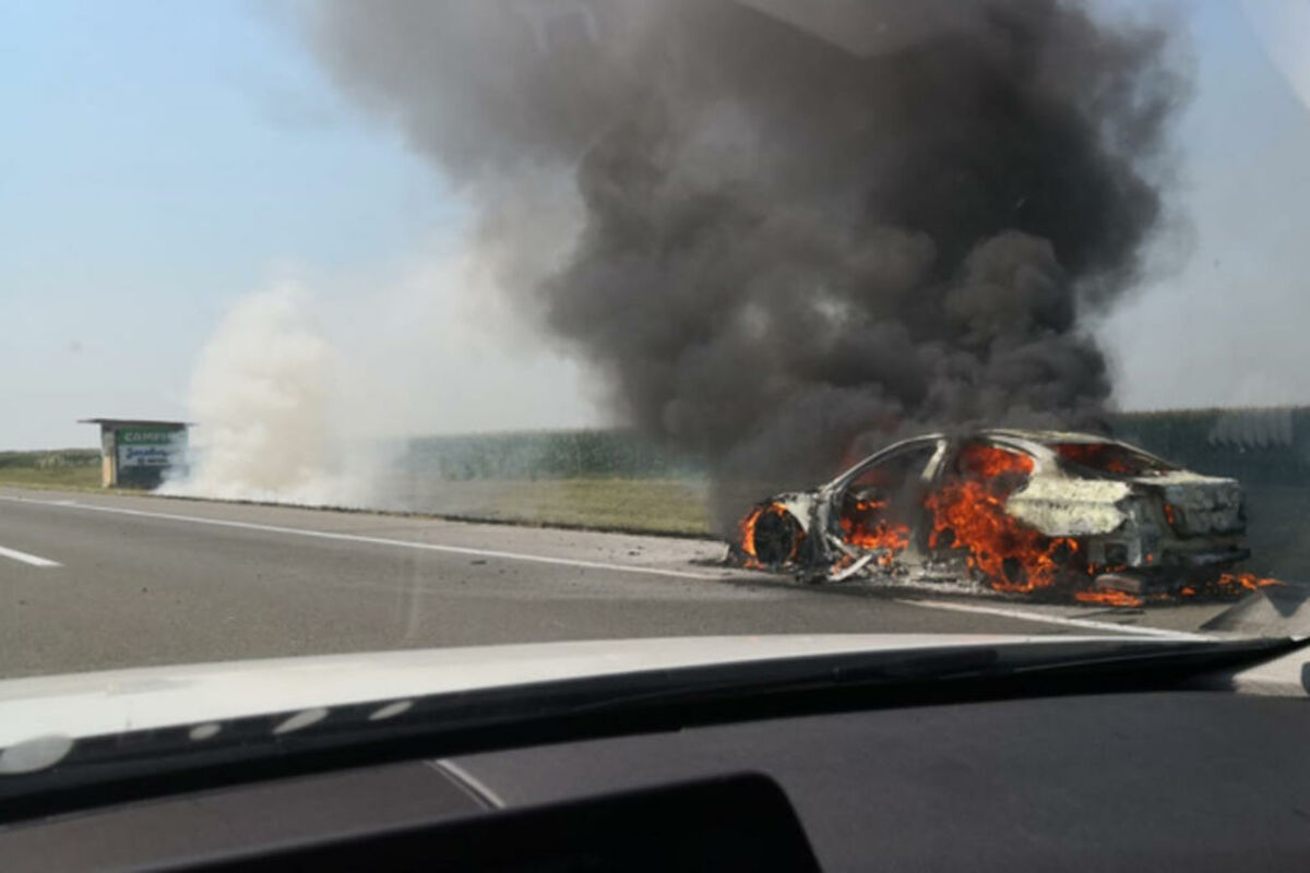 Automobil marke Audi potpuno je izgoreo na auto-putu Beograd-Zagreb u blizini Rume.