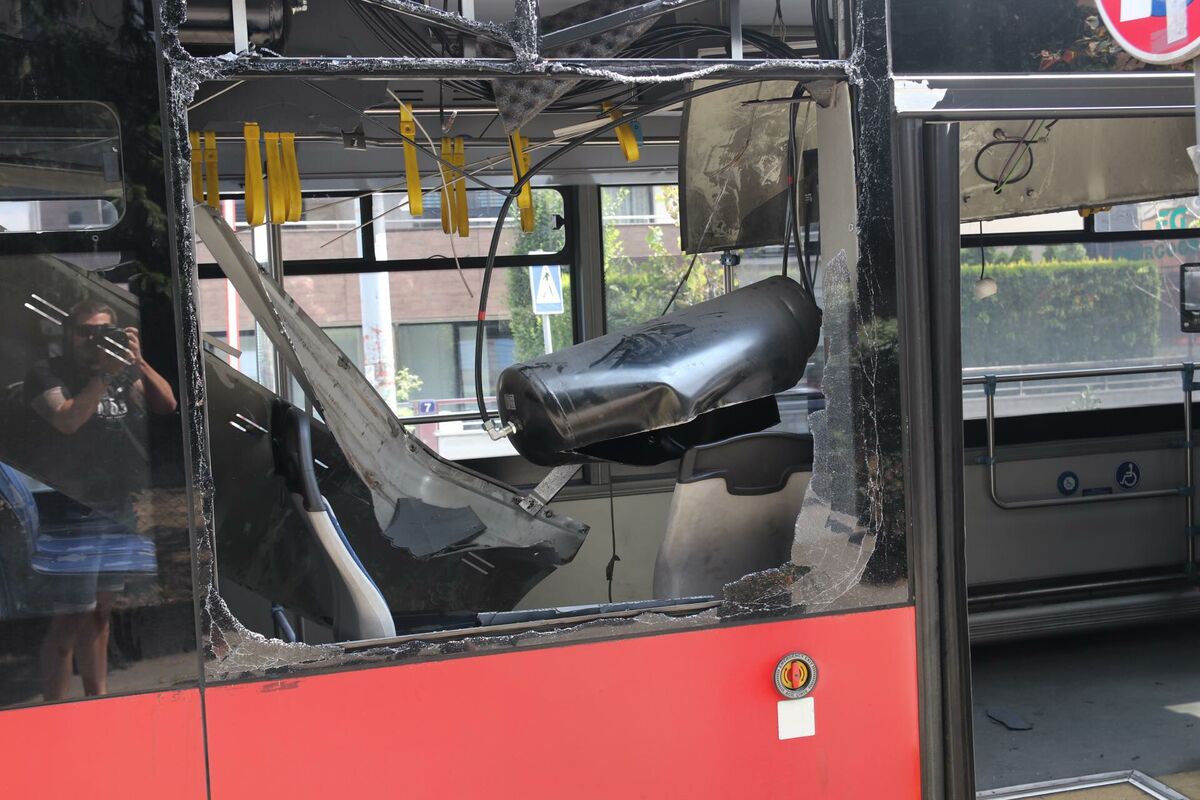 Po staklima autobusa vidljiva je krv.