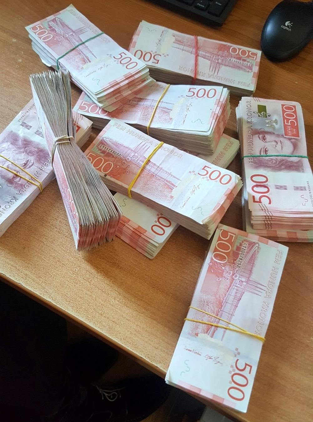 Carinik je, međutim, kod jednog putnika 46-godišnjeg švedskog državljanina pronašao 20 buntova sa novčanicama od po 500 švedskih kruna.