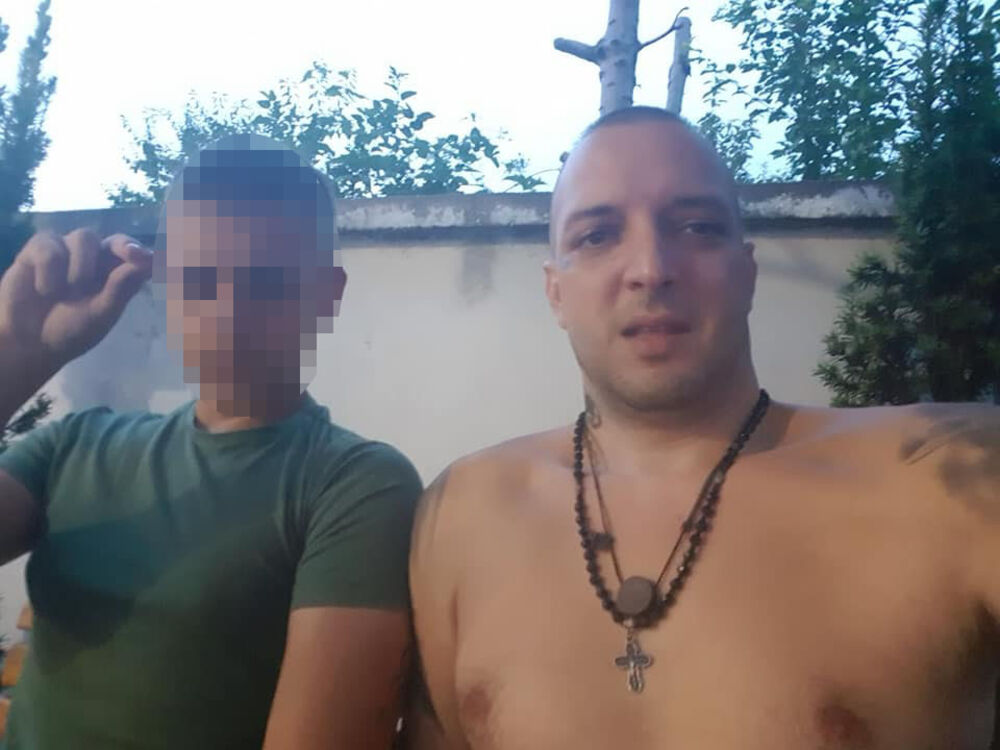 Na fotografijama se vidi kako Zoran, go do pojasa i sa brojanicom i lančićem sa krstom oko vrata, drži Uroša na ramenima, dok mladić pokazuje mišiće.
