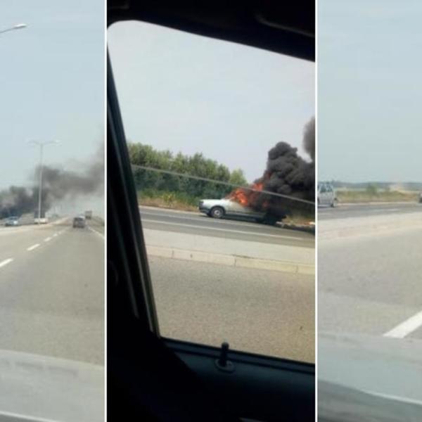 Iz pravca Zemuna kod Pupinovom mostu, kod isključenja za Zrenjanin gori automobil, saznaje Kurir.