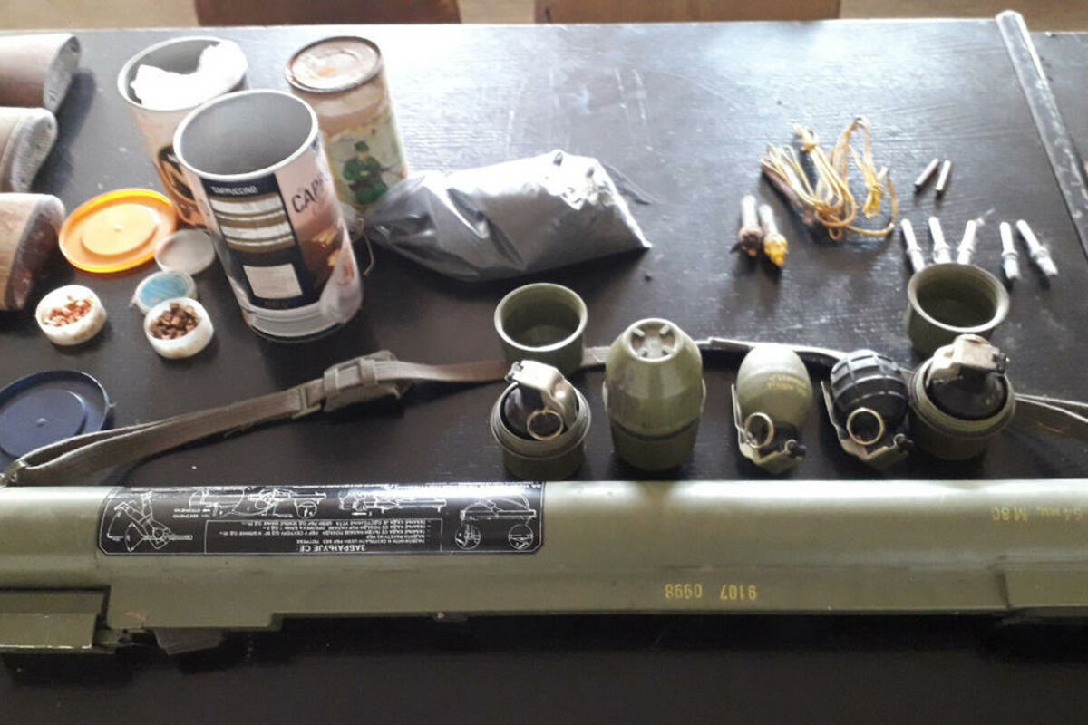 Kako se navodi u saopštenju MUP, policija je prilikom pretresa stana osumnjičenog, zaplenila pet ručnih bombi, tri lovačke puške, revolver, pištolj, pet puščanih cevi, 638 komada municije različitog kalibra, 67 lovačkih patrona, sedam detonatorskih kapisli i 1,82 kilograma baruta.
