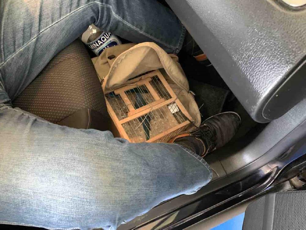 Tada je otkriveno da su ptice bile zarobljene u tri zatvorene putne torbe od kojih su se dve nalazile između prednjih i zadnjih sedišta, a jedna kod suvozačevog sedišta.