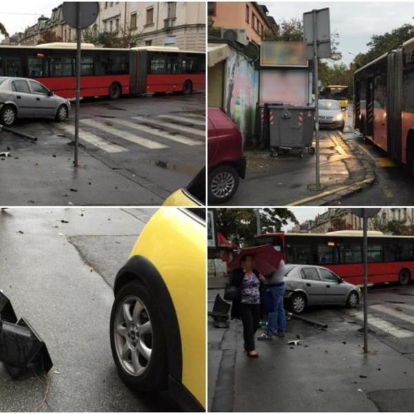 AUTO SE ZAKUCAO U SEMAFOR, ISČUPAO GA PA ZAVRŠIO NA KROVU: Teška saobraćajna nesreća u Zemunu!