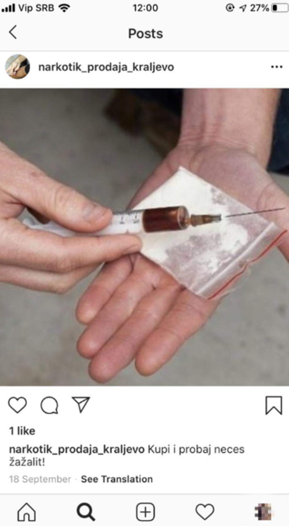 PROBAJ I NEĆEŠ ZAŽALITI: Banda iz Kraljeva prodaje DROGU na INSTAGRAMU, cene od 1.000 do 2.700 dinara! I SVI ĆUTE!!