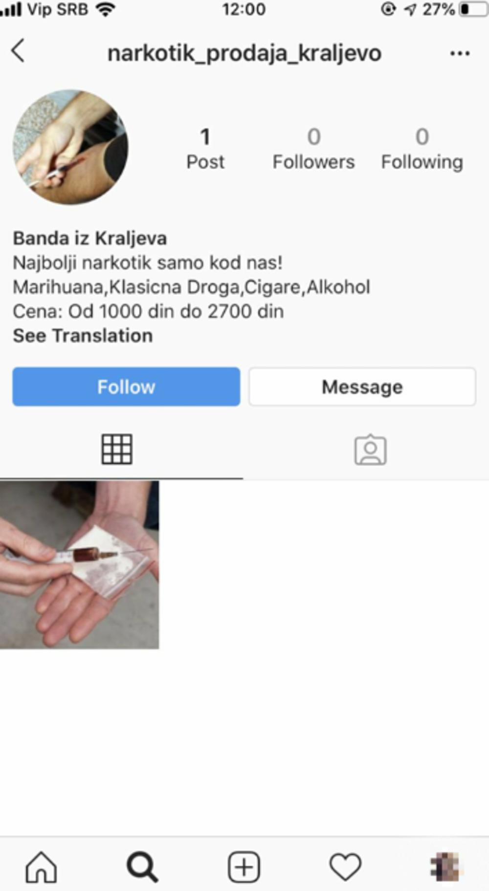 Kako se čini, ovaj profil vode ljudi iz Kraljeva, a isti je i upisan imenom "Narkotik_prodaja_Kraljevo", u opisu stoji "Banda iz Kraljeva".