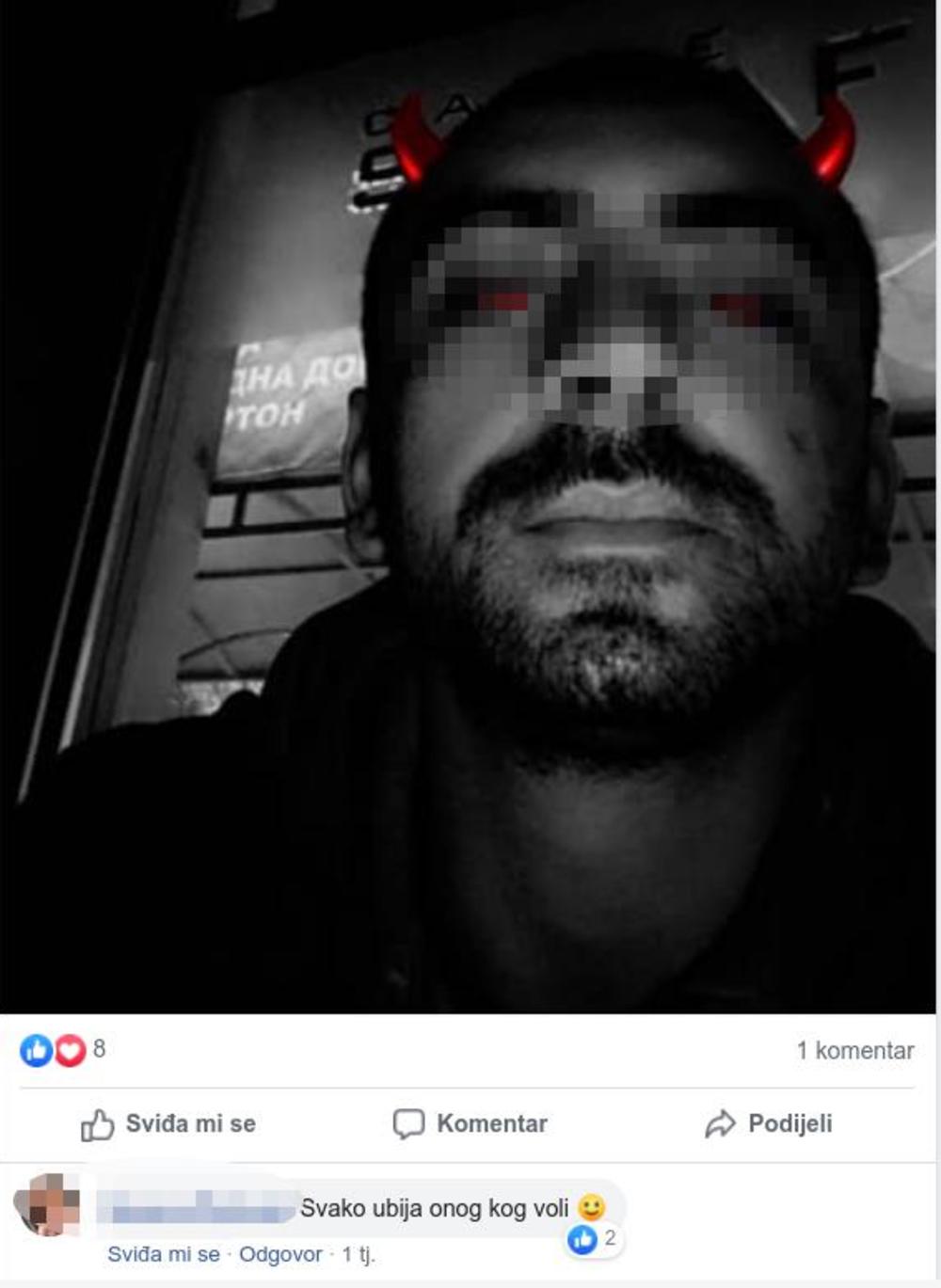 Objavio je selfi na kojem je sebi dodao đavolske rogove i zacrveneo zenice uz komentar ispod slike: „Zlo u očima!“ Kao da je naslutila krvavi pir jedna prijateljica prokomentarisala je fotografiju rečima:“Svako ubija onog ko voli!“