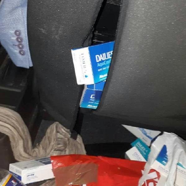 Detaljnom kontrolom koja je ipak usledila najpre je u naslonima vozačkog i suvozačkog sedišta, ispod presvlaka, pronađeno 111 kutija različitih kontaktnih sočiva robnih marki „Dailies“ i „Air Optix“.