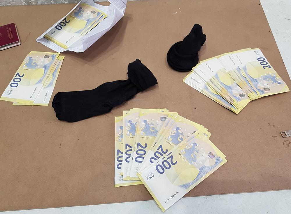 Prilikom detaljne kontrole u džepovima jakne koju je imao na sebi, pronađene su dve čarape sa po 10.000 evra