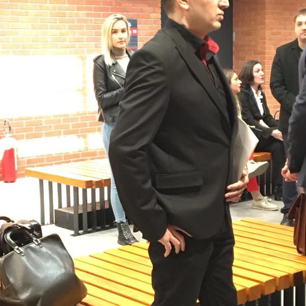 On se trenutno nalazi ispred sudnice u Palati pravde i vidno je nervozan, a advokati ga bodre da se smiri.